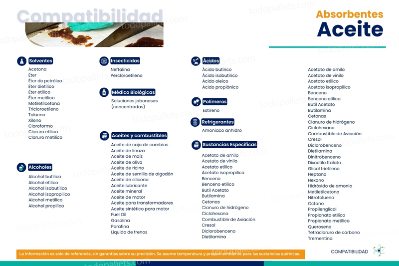 Es un absorbente selectivo que absorbe el aceite, pero no el agua. Se utiliza para rodear derrames de petróleo sobre fuentes de agua para evitar una mayor contaminación (flota en el agua), así como para capturar sustancias peligrosas que ya se han derramado. Producto que flota en el agua para evitar que los derrames de aceite e hidrocarburos se expandan.