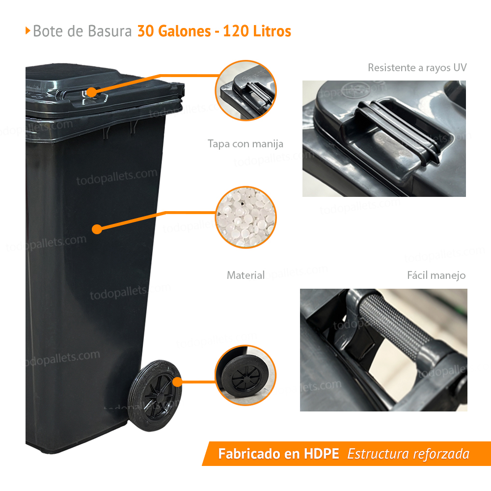 Bote de Basura 120 Lts. / 30 Galones color Negro