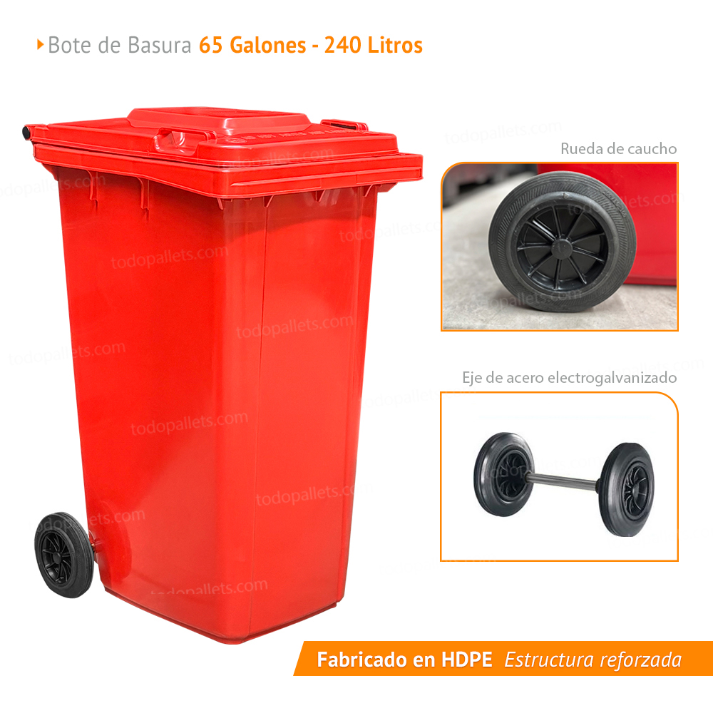 Bote de Basura 240 Lts. / 65 Galones color Rojo
