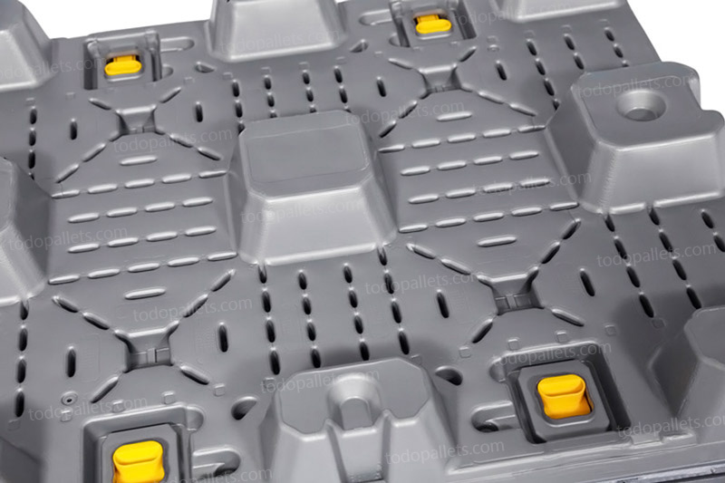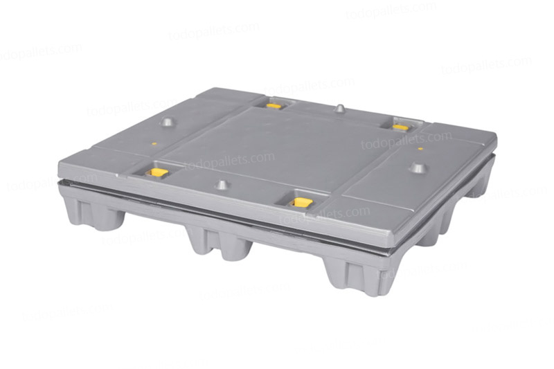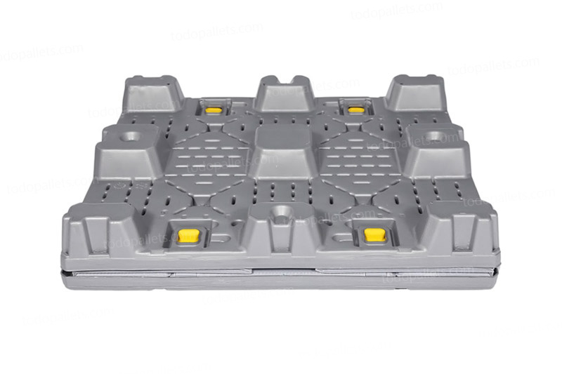 Ideal para almacenamiento o envío de autopartes, maquinaria y componentes electrónicos. Cuenta con un panel desplegable, una caja de cartón corrugado y una tarima de plástico termoformado de 4 entradas, junto con una tapa que garantiza la estabilidad permite hasta 5 estibas, sin exceder los 300 kg. Cumple con Normas Aduaneras Internacionales, ISPM15 e ISO 22000.