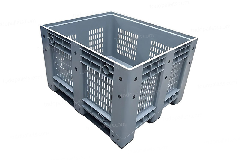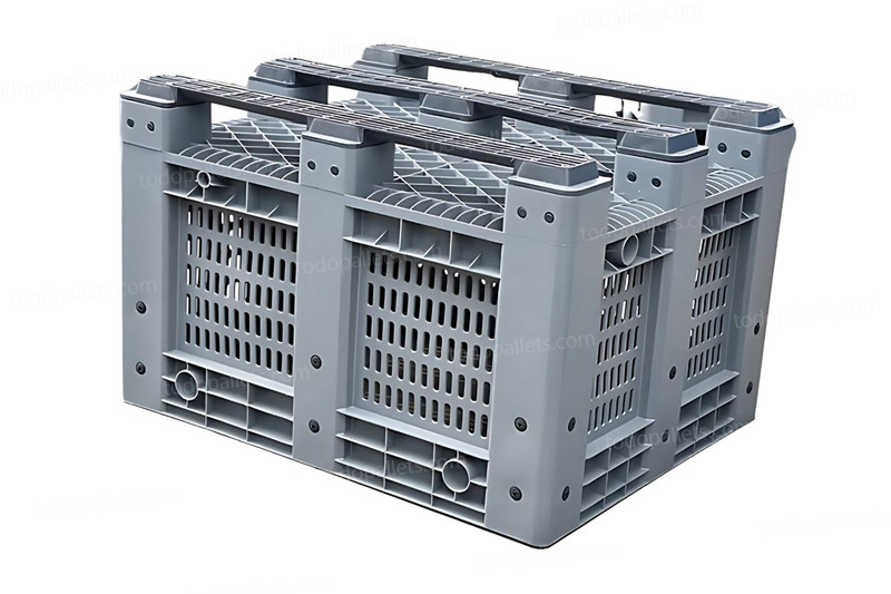 El contenedor plástico ventilado está fabricado en HDPE/PP de alta resistencia, ofreciendo durabilidad, seguridad y eficiencia en el almacenamiento y transporte de mercancías. Gracias a su estructura robusta, soporta temperaturas extremas de -40 °C a 70 °C sin deformarse, lo que lo convierte en una solución confiable para diversas industrias.
