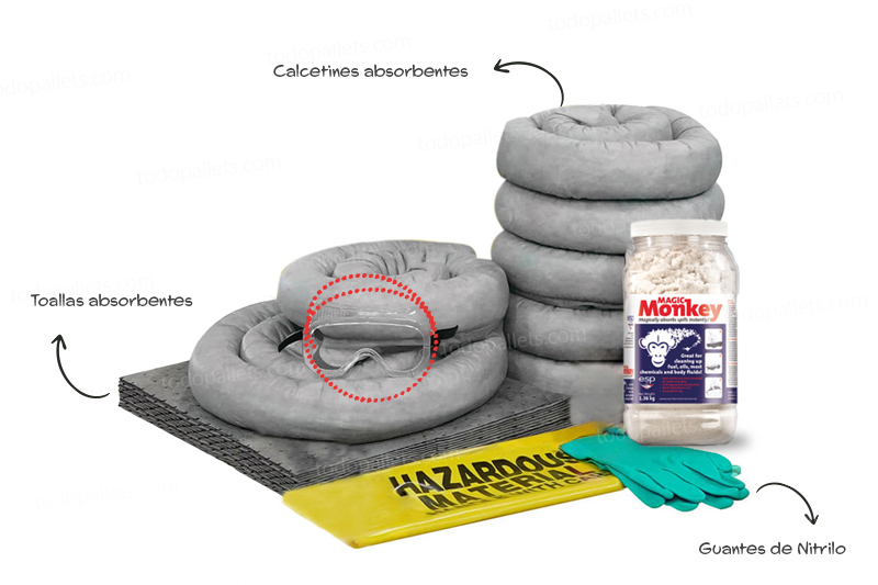 Está compuesto por absorbentes universales para derrames y materiales especializados que cumplen con las normativas más estrictas para el manejo y transporte seguro de sustancias. Su uso adecuado es indispensable para asegurar la protección contra derrames, cumplir con las regulaciones medioambientales y garantizar la salud de sus empleados.