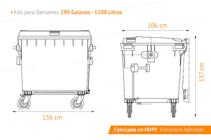 Capacidad del contenedor: 1100 litros / 290 Galones