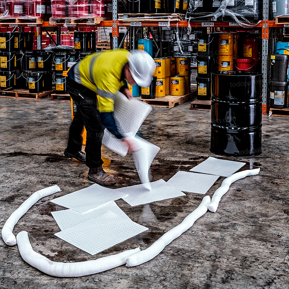 Con todos los materiales necesarios incluidos, este kit ofrece una respuesta rápida y eficiente, cumpliendo con las regulaciones vigentes y contribuyendo a mantener un entorno laboral seguro y limpio.