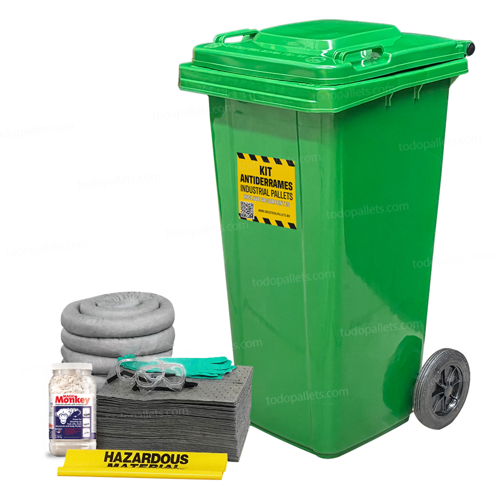 Con todos los materiales necesarios, el kit asegura una respuesta rápida, eficiente y en cumplimiento con las regulaciones vigentes, manteniendo así su lugar de trabajo seguro y limpio.