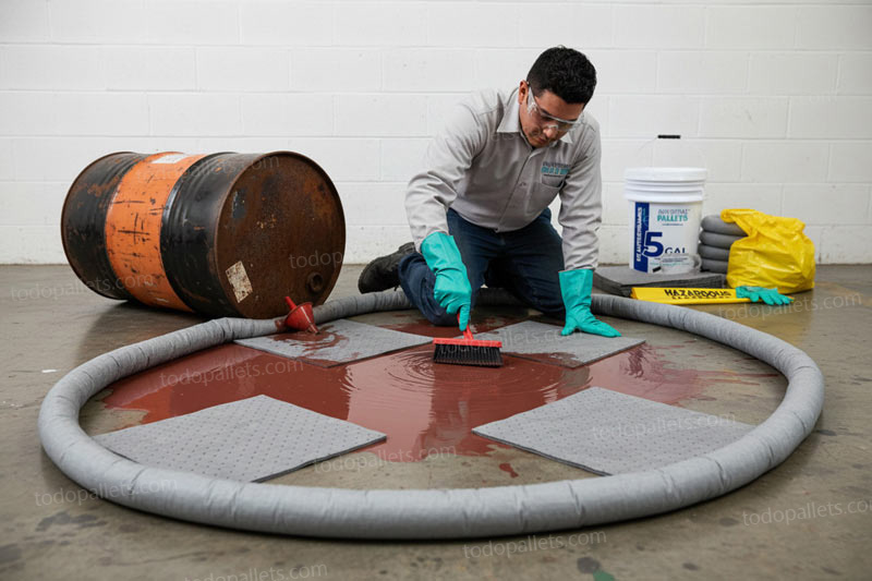 El contenido del kit está diseñado para absorber eficientemente una amplia gama de líquidos, lo que lo hace ideal para su uso en áreas propensas a derrames de sustancias químicas peligrosas. Incluye toallas absorbentes, calcetines absorbentes, bolsa para desechos, guantes de nitrilo y goggles de seguridad, proporcionando todos los elementos necesarios para una respuesta efectiva ante emergencias. Con un peso total de 5 kilogramos y dimensiones compactas, este kit es una herramienta esencial para mantener la seguridad y el cumplimiento normativo en operaciones industriales.