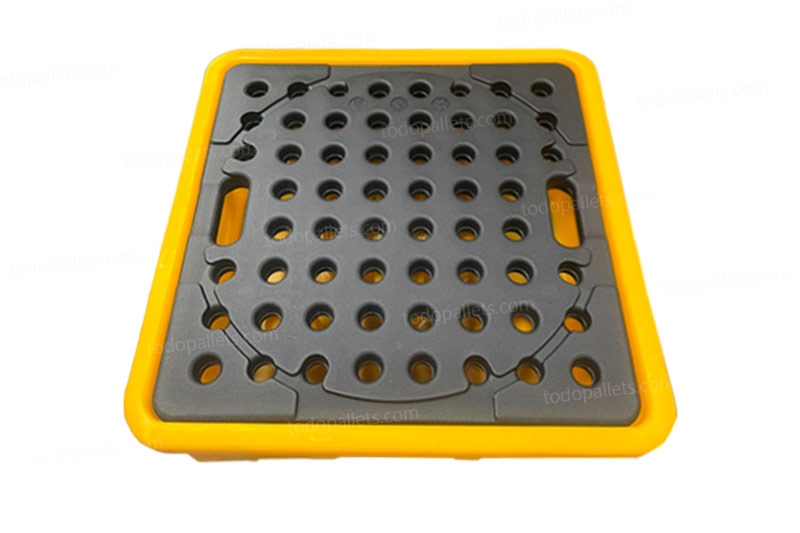 Tarima de Plástico Antiderrames para un Tambo Industrial, fabricada en polietileno de baja densidad (LDPE) resistente a químicos, corrosivos, Rayos UV y variaciones extremas de temperatura Cuenta con rejilla removible, tapón de drenaje que agiliza la limpieza del sumidero y circunferencia de contención del tambo para un manejo más seguro. Aprobada por las Normas: ISO 9001:2015, ISO 14001:2015, ISO 18001:2007, ISO 45001:2018, EPA 40 CFR 264.175, NPDES y UFC.