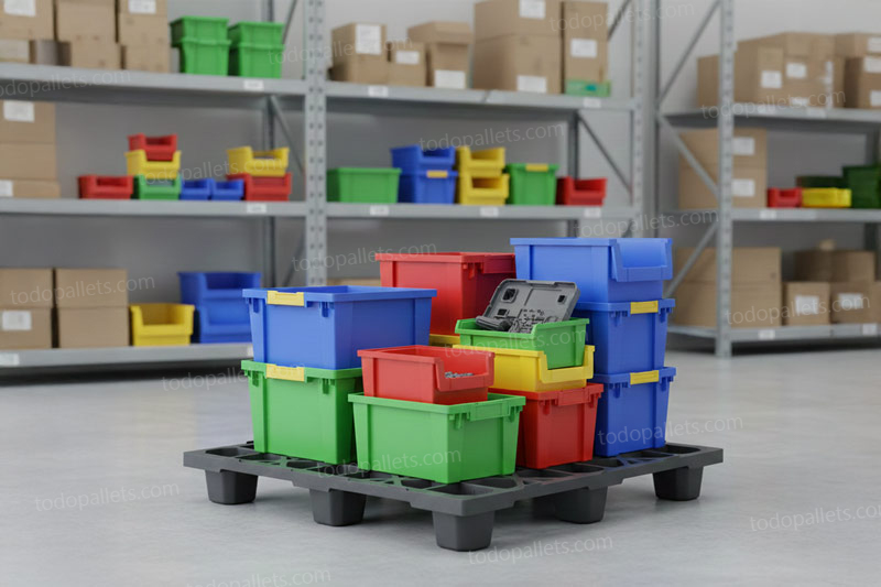 - Ligereza y Eficiencia: Más liviano que las alternativas de madera, este pallet ofrece una solución eficiente en términos de peso, lo que facilita la manipulación y el transporte, sin comprometer la resistencia y durabilidad necesarias en la industria automotriz.